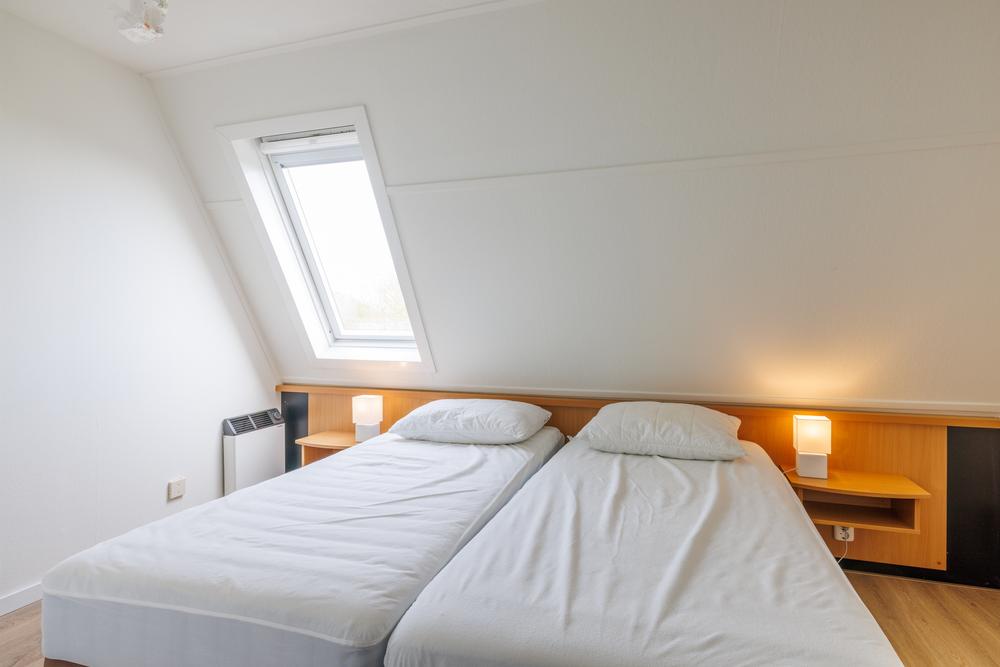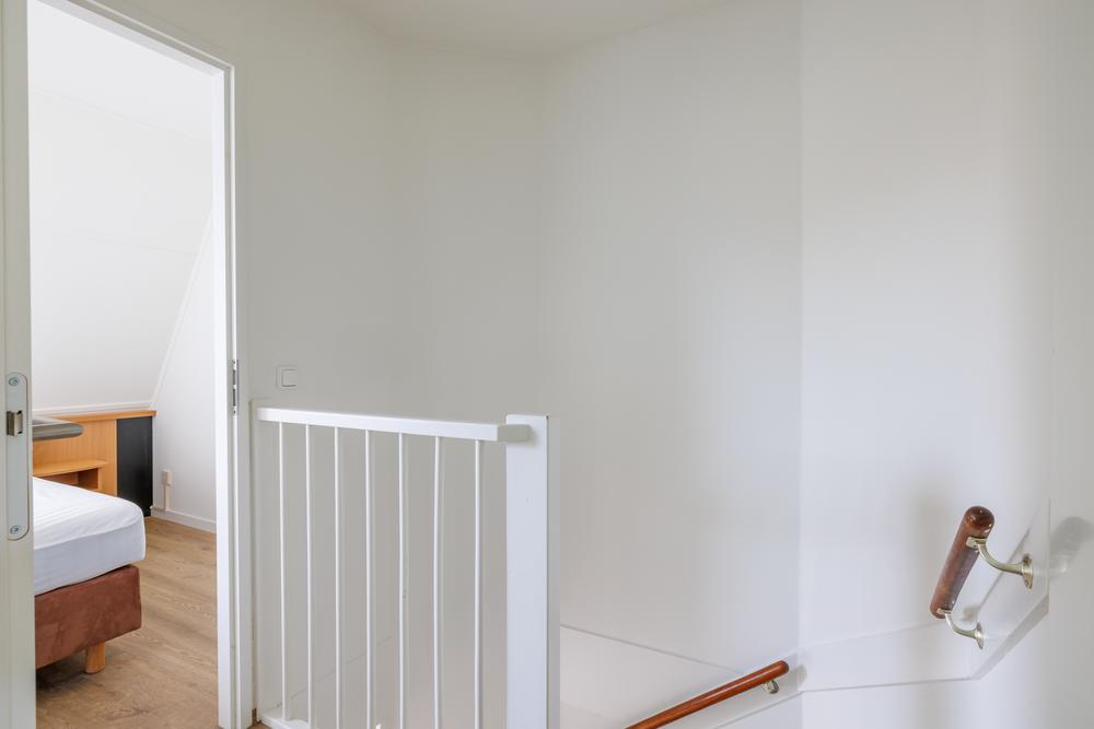 Op de bovenverdieping bevinden zich twee slaapkamers en de badkamer. De hoofdslaapkamer is royaal van opzet en de tweede slaapkamer is perfect als logeer- of kinderkamer, waardoor de woning geschikt is voor meerdere gasten.